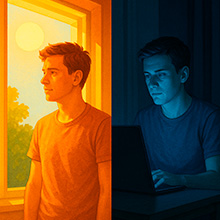 Современный образ жизни часто становится причиной нарушений биоритмов. Искусственное освещение, особенно синий свет от экранов телефонов и компьютеров, подавляет выработку мелатонина, гормона сна. Стресс, нерегулярный режим сна и физическая нагрузка в неподходящее время также способны "сбивать" наши внутренние часы. Особенно опасно длительное воздействие таких факторов, поскольку организм теряет способность восстанавливать естественный ритм.