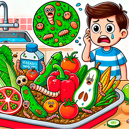 - Тщательное мытье овощей и фруктов. Промывайте овощи и фрукты в проточной воде перед употреблением, чтобы удалить возможные паразитарные яйца и цисты.